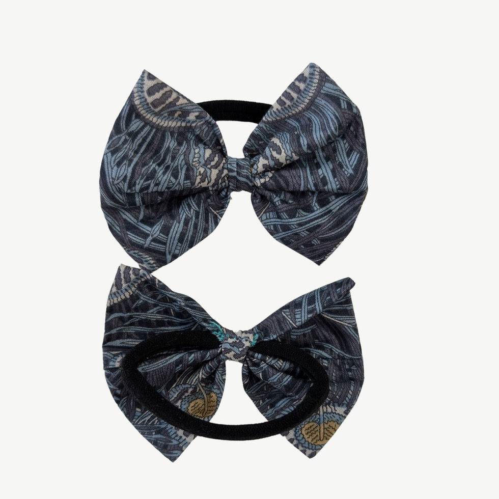 Spot-clean gently with a damp cloth and let air dry. Each bow is handmade, so print placement may vary, making every set unique.